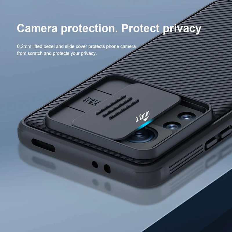شرکت نیلکین بار دیگر با طراحی جدید اقدام به تولید قاب های کم شیلد پرو ( CamShield Pro ) برای گوشی موبایل شیائومی Mi 12T Pro کرده است. مواد اولیه ی کاورCamShield Pro از دو جنس میباشد؛ در قسمت پشت از مواد سخت و در قسمت دور تا دور و لبه های قاب از مواد TPU که کمی انعطاف پذیر است ساخته شده است. برش های کاور کم شیلد پرو در قسمت پورت ها و دوربین با دقت بسیار بالایی انجام شده، همچنین پوششی از همان جنس منعطف TPU بر روی دکمه ها تعبیه شده که خود محافظی برای دکمه های گوشی کاربر است. طراحی قاب کم شیلد پرو نکته ی بسیار حائز اهمیتی دارد که این مدل کاور Nillkin را از بقیه ی قاب های نیلکین متمایز می کند آن هم درب کشویی با کیفیتی است که در پشت کاور برای محافظت از لنز دوربین گوشی تعبیه شده است که بسیار مناسب برای کاربرانی هست که از بابت خراشیدگی و ضربه به لنز دوربین موبایل نگرانی دارند و همچنین وجود شیار هایی در دو طرف قاب و پشت آن و نیز برجستگی این شیارها مانع لیزخوردن گوشی از دست کاربر خواهد شد.