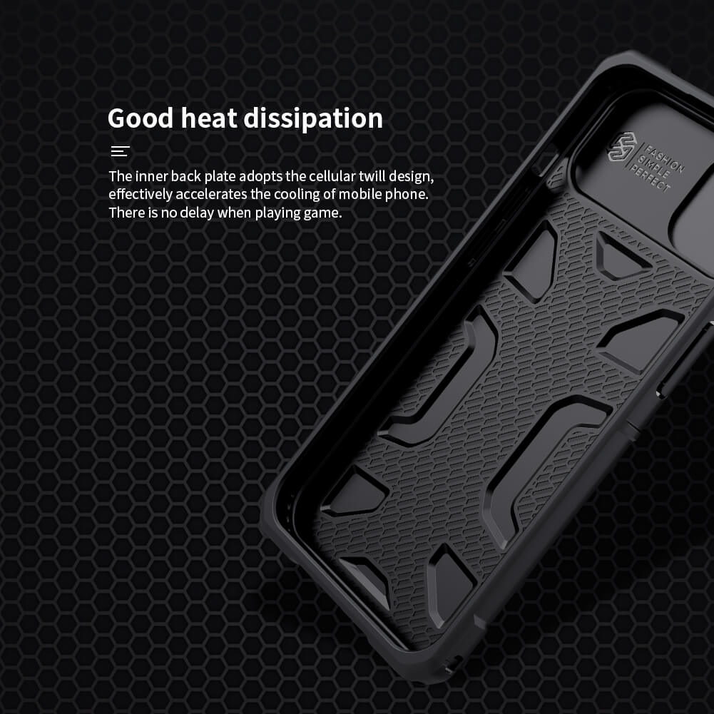 کاور نیلکین مدل Adventurer به گونه ای طراحی شده است که در هنگام پیاده روی و ورزش از دستتان لیز نخورد و وقتی گوشی را دستتان گرفتید حس فوق العاده ای را احساس کنید. پشت گوشی دارای طراحی خاصی می باشد که گرمای گوشی و باتری را از خود عبور دهد و باعث خنک شدن گوشی می شود. کاور نیلکین مدل Adventurer دارای محافظ برای دوربین شما نیز می باشد و با خرید این قاب علاوه بر گوشی از دوربین موبایلتان نیز محافظت می کنید. این قاب از مواد سازگار با محیط زیست (PC) و مواد (TPU) ترکیبی از نرمی و سختی ساخته و تولید شده است. این محصول علاوه بر بدنه گوشی از قسمت لنز دوربین به بهترین شکل ممکن محافظت می کند.